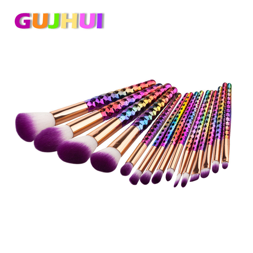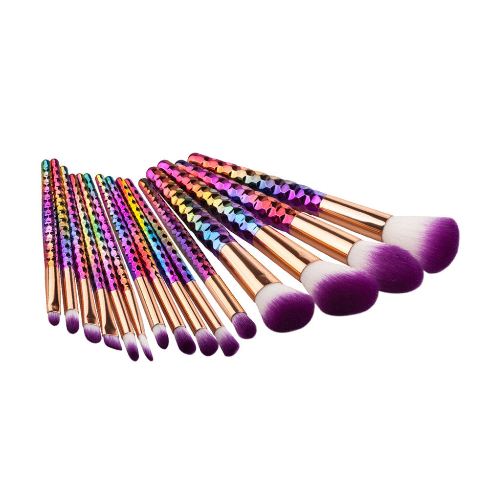 15PCS Rose gold pro Makeup Brushes Set rainbow hair Eyebrow Blush Cosmetic Foundation Eyshadow Blusher Powder Blending Brush Kit