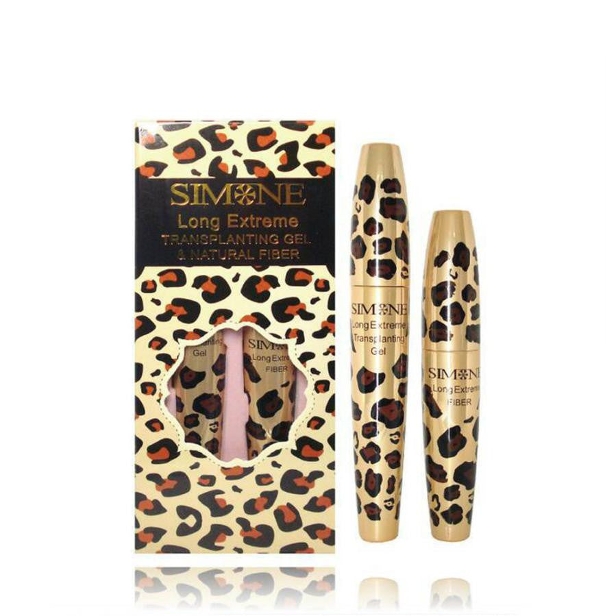 2016 new style 2PCS / set SIMONE New Leopard 3D Natural Fiber Combination Waterproof Mascara Lengthening Anne