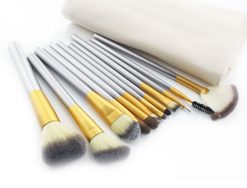 2017 Hot Sale 12pcs Makeup Brushes set Fondation Eyeshadow Cosmetic Tool with Leather soft makeup brush set Anne