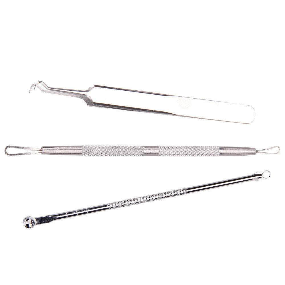 3Pcs sets Stainless Blackhead Facial Acne Spot Pimple Remover Extractor Tool Acne needle Blackhead Remover Tweezers kits