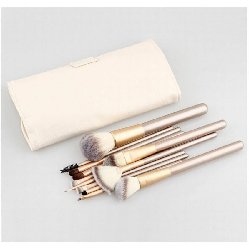 Adult 22 * 11 * 2cm 12Pcs Makeup Brushes set Fondation Eyeshadow Cosmetic Tool with Leather Reusable storage pouch Anne