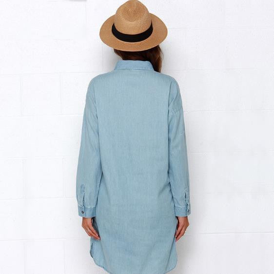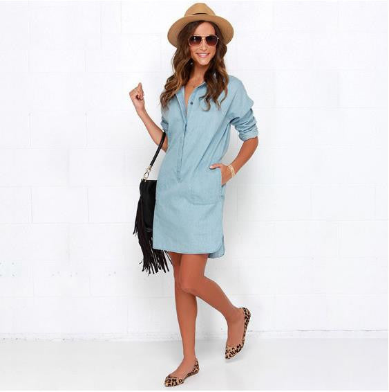 Autumn Plus Size Casual Women Dress Long Sleeve Blue Denim Dress Summer Shirt Dress Vestidos Robe Femme