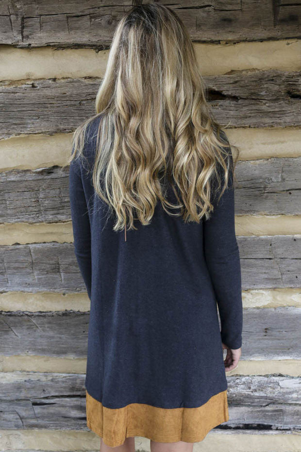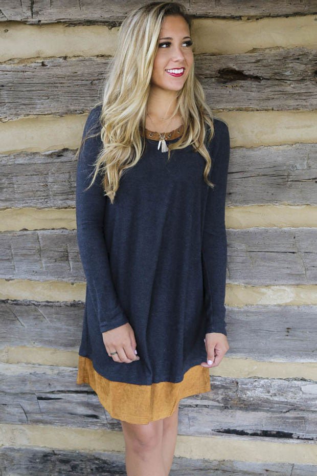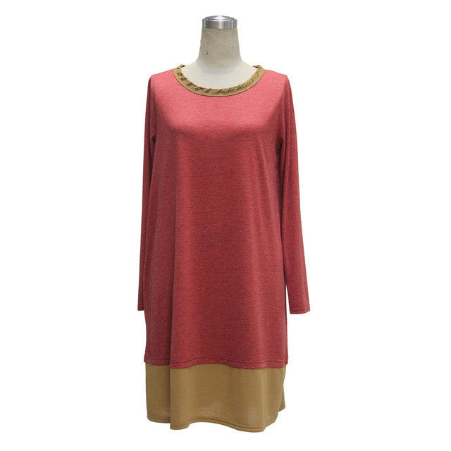 Back Lace Up Patchwork Long Sleeve Loose Shift Dress Boho Women Casual Autumn Dress Bohemian Style Dress 2016 New Arrival
