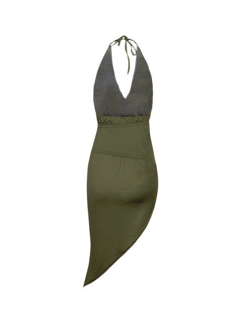 Backless Halter Wrap Spaghetti Strap High Side Slit Sexy Women Dress With Belt Bowknot Asymmetrical 2016 Fashion Party Club
