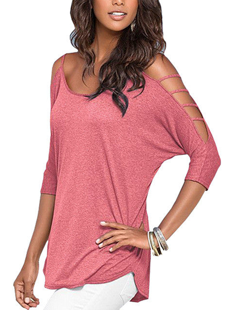Batwing Shirt Off Shoulder Strappy Hollow Out Loose Blouse femme 2016 Cotton Navy Blue Womans Casual Summer Blouse Fashion