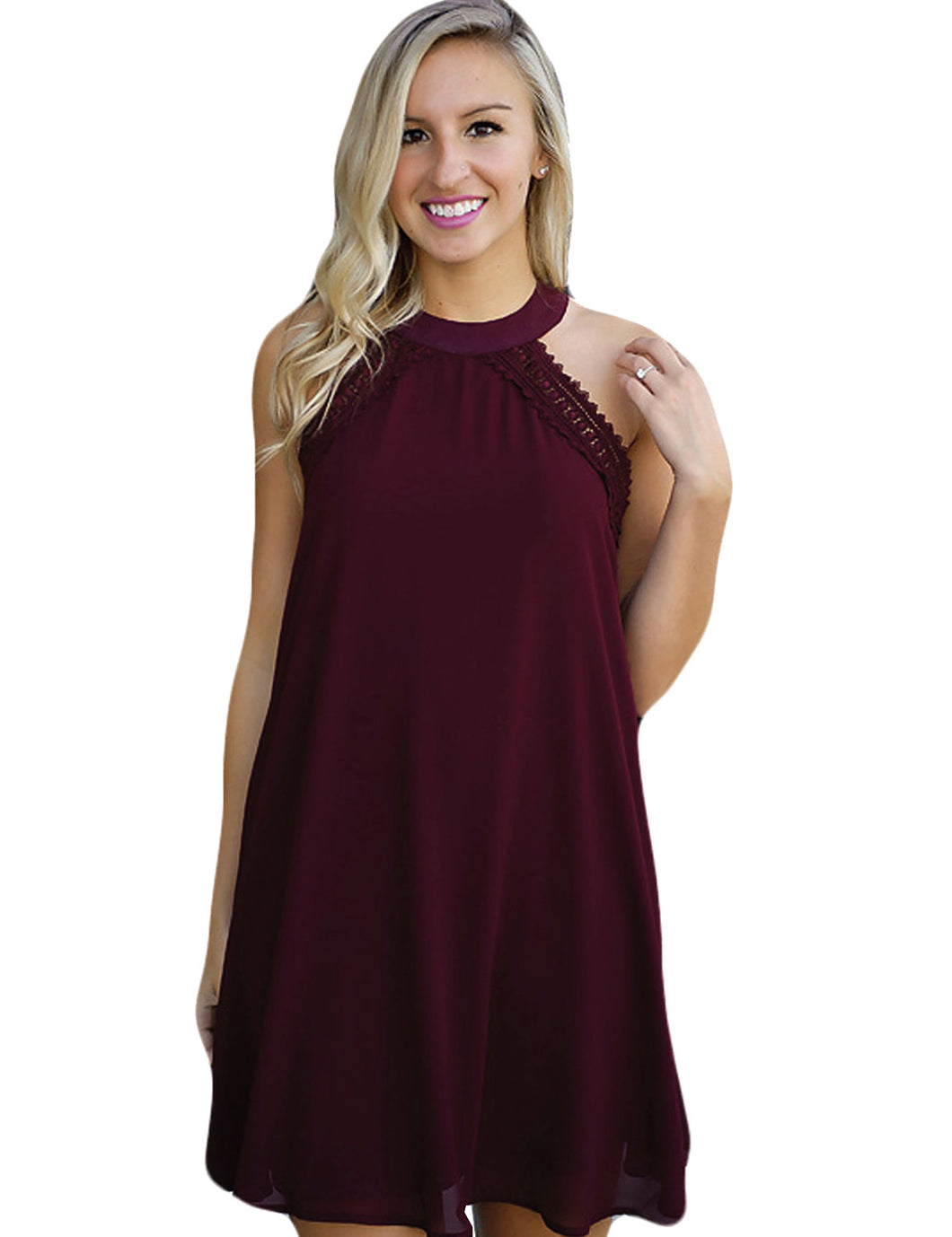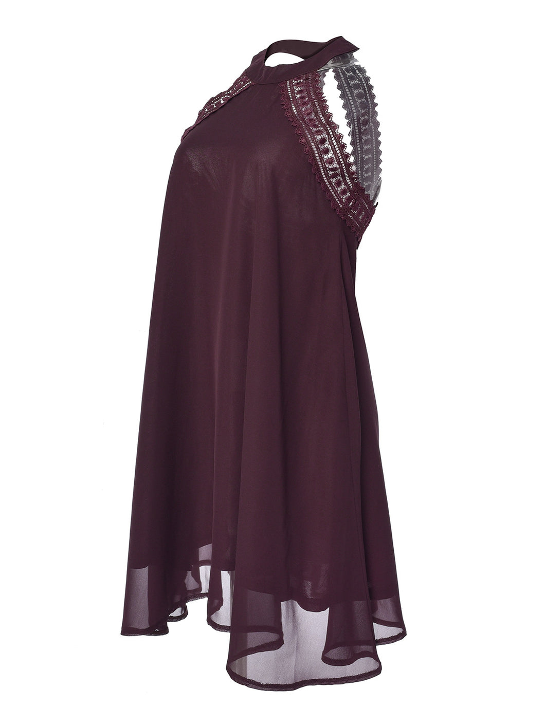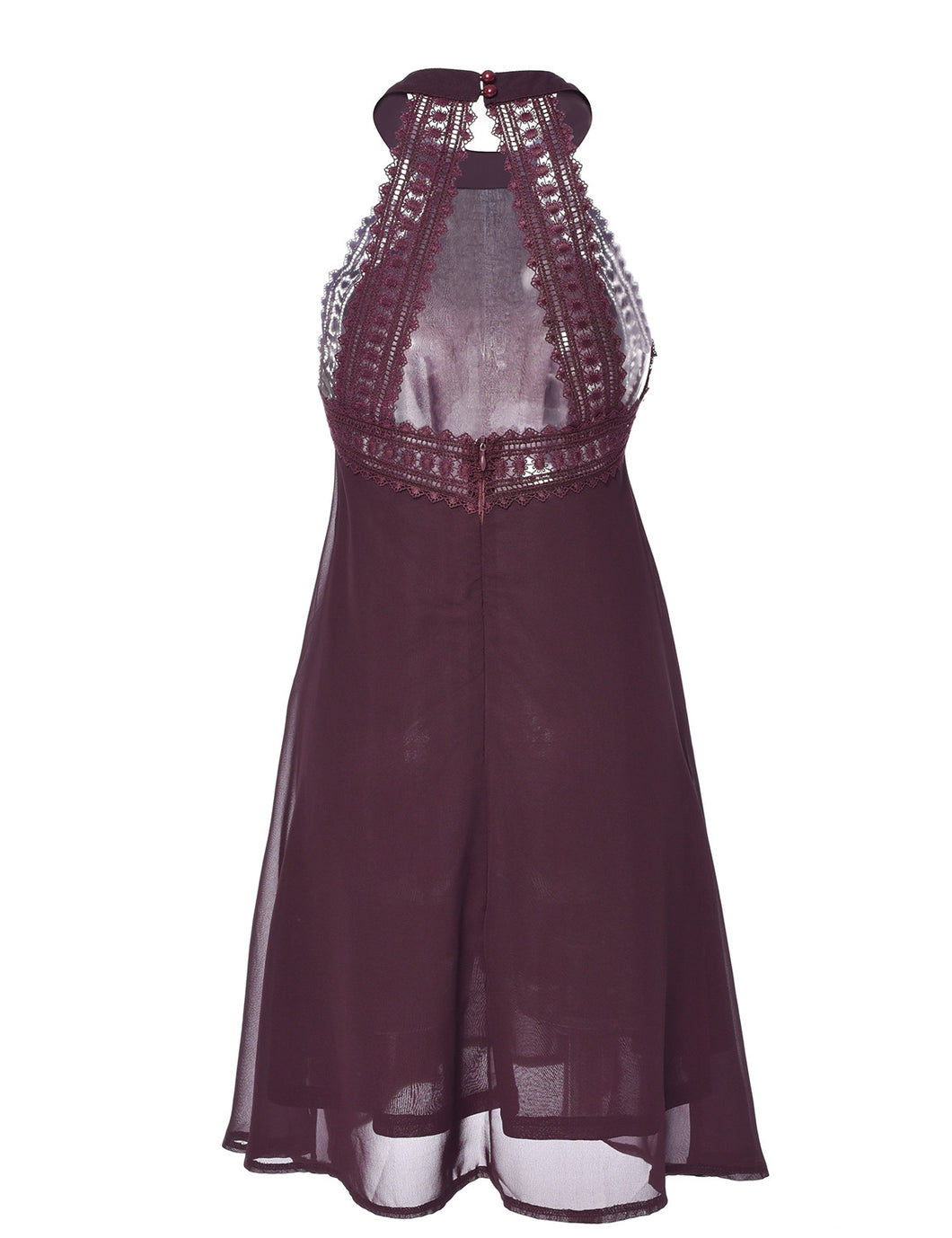 Blooming Jelly Hollow Out Open Back Dress Patchwork A -Line Chiffon Dress Mini Dress