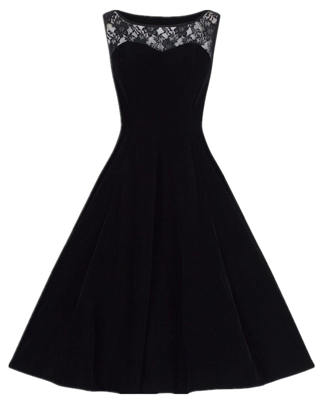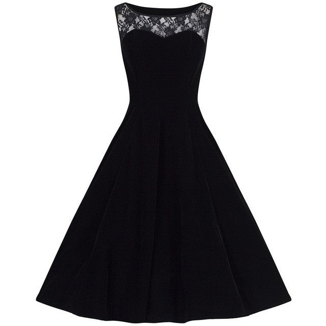 Blooming Jelly Lace Patchwork Swing Dress O-Neck Black Sleeveless Dress Fit and Flare Summer Dresses 2017