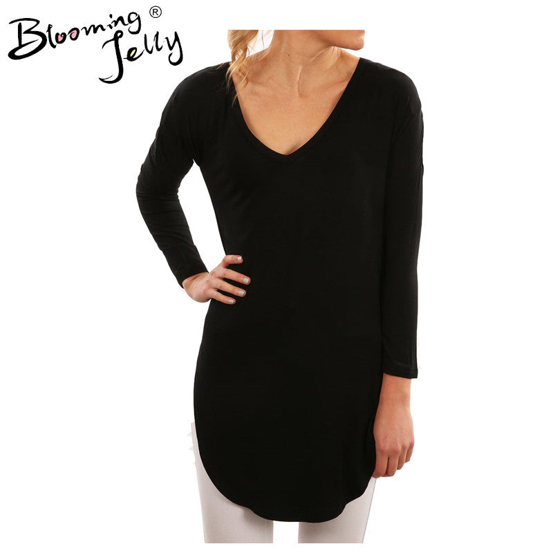 Blooming Jelly Long 2017 Double Side Slit Casual Tops Female Shirt Women Simple Autumn Top Black Blouse Female Shirt