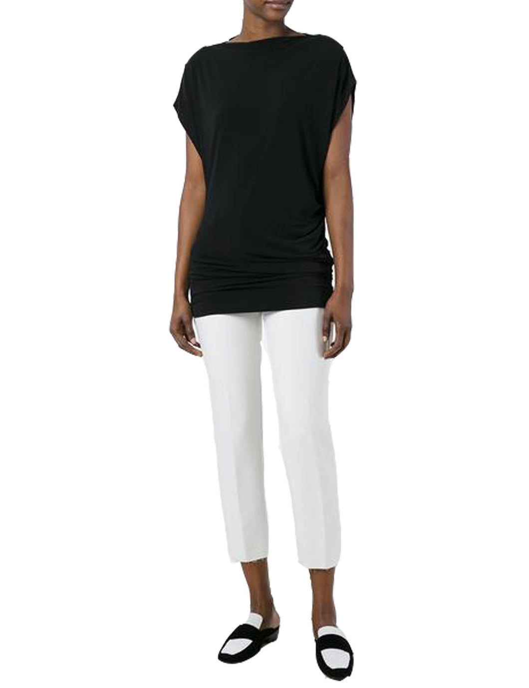 Blooming Jelly Ruched Wrap Hip Shirt Slash Neck Black Shirt Fashion Long Women Skinny Summer Blouses 2017