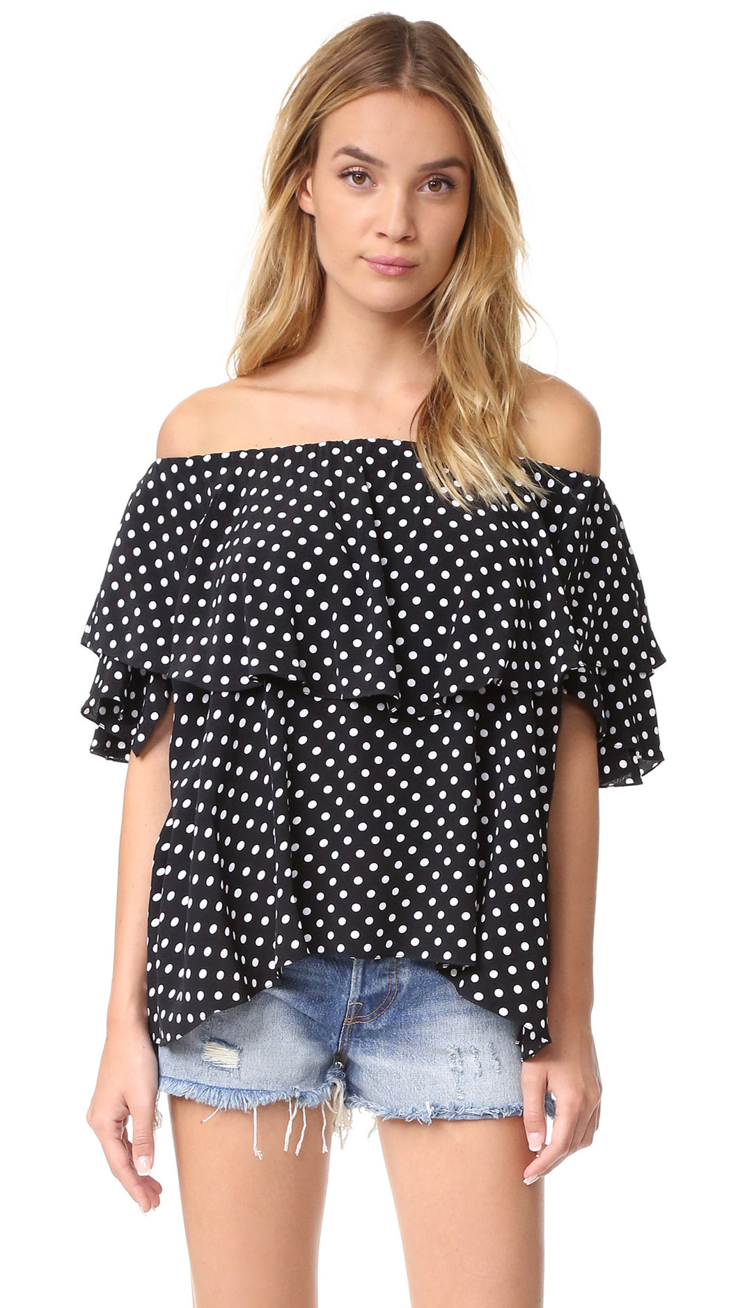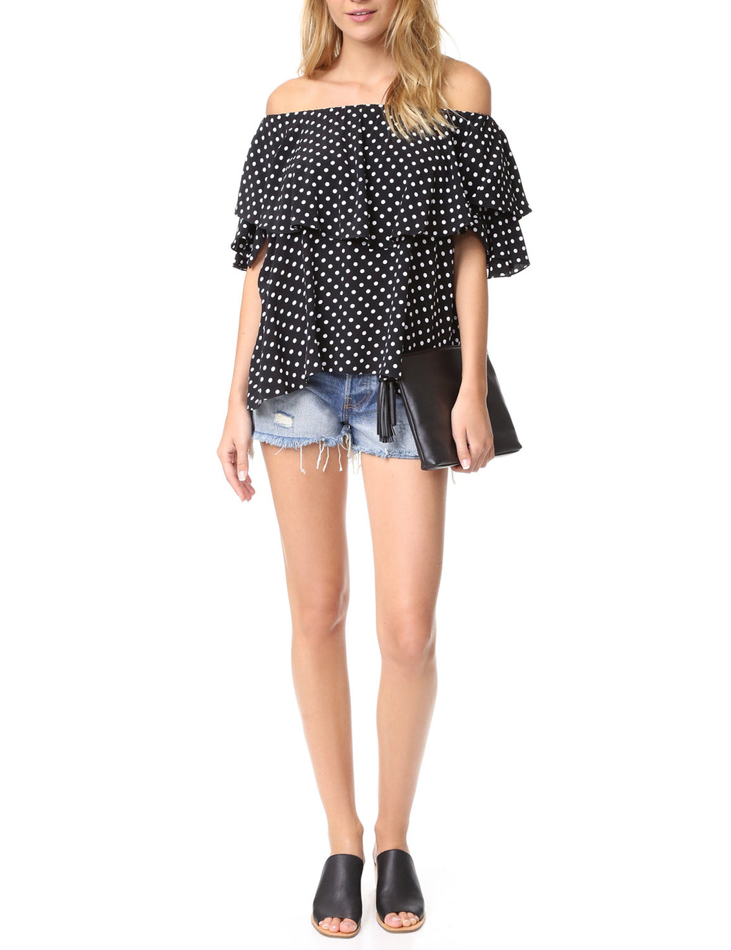 Blooming Jelly Ruffle Black Blouse Polka Dot Blouse Off Shoulder Top Women Tops And Blouses 2017 New Fashion