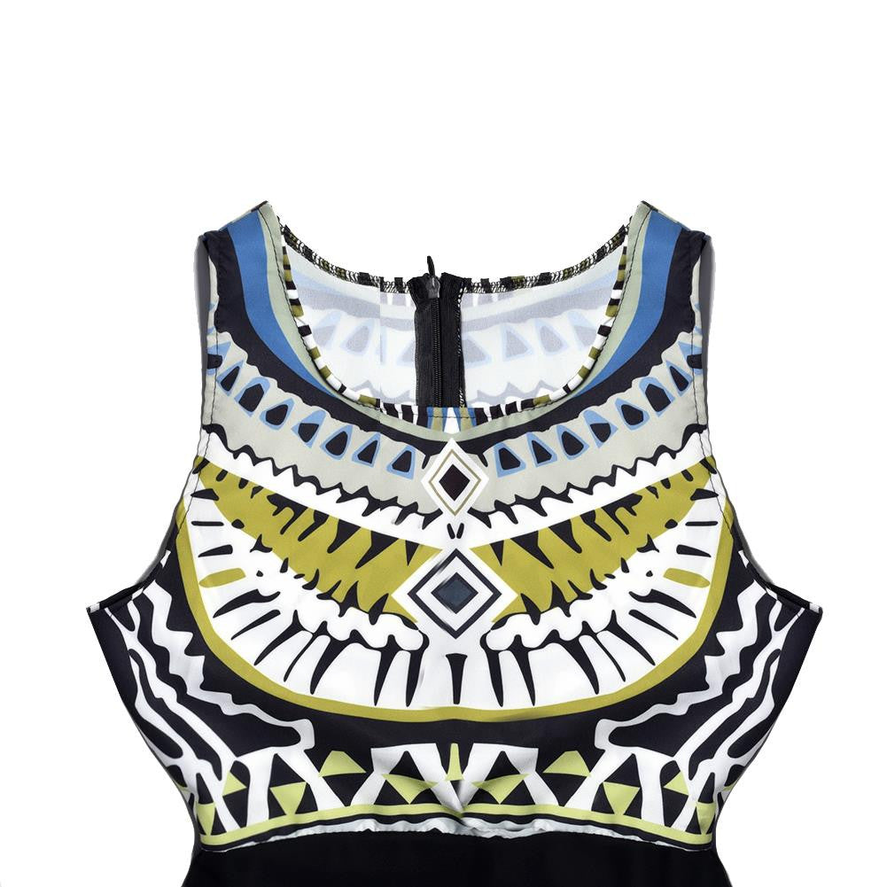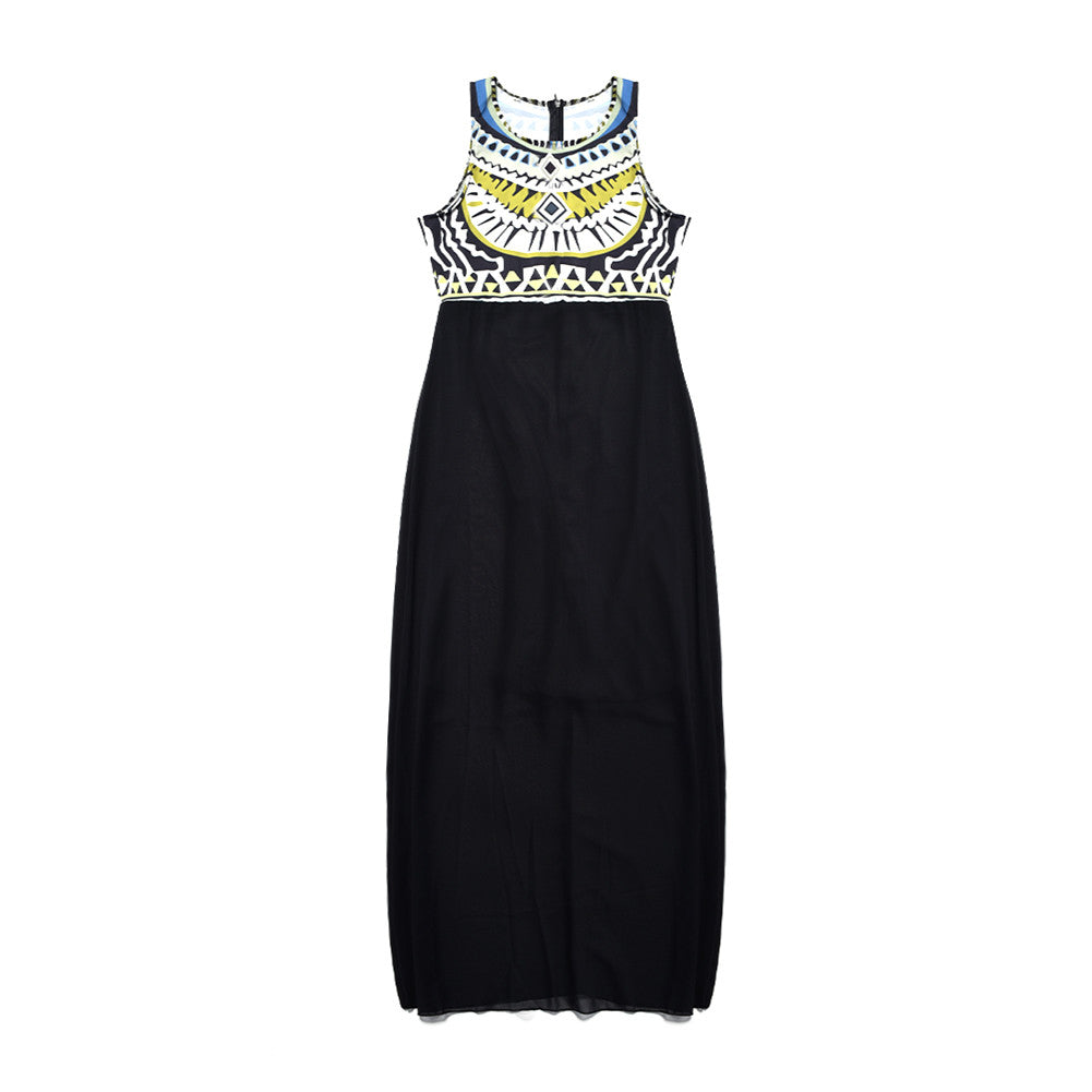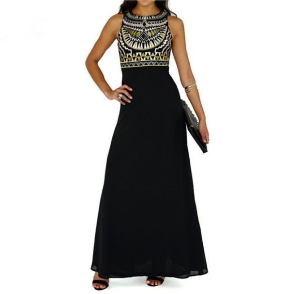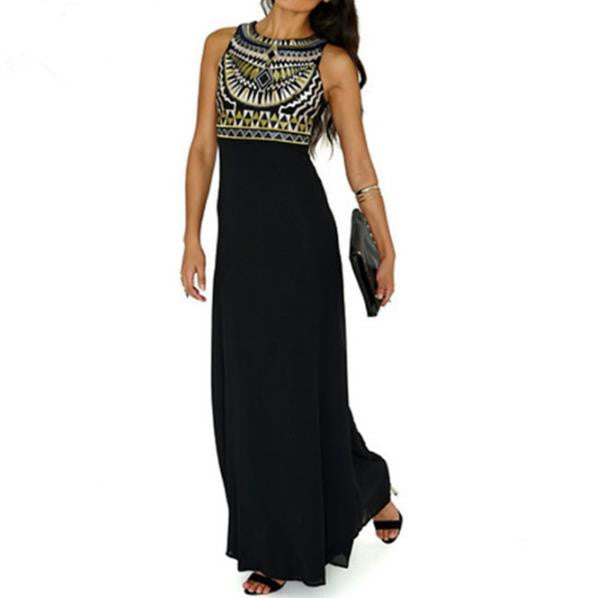 Boho Ehthic Tribal Print Long Maxi Dress Chiffon Party Brazilian Spring Women Beach Causal High Waist Sleeveless Black Dress