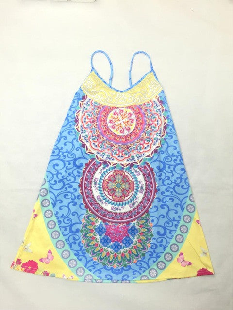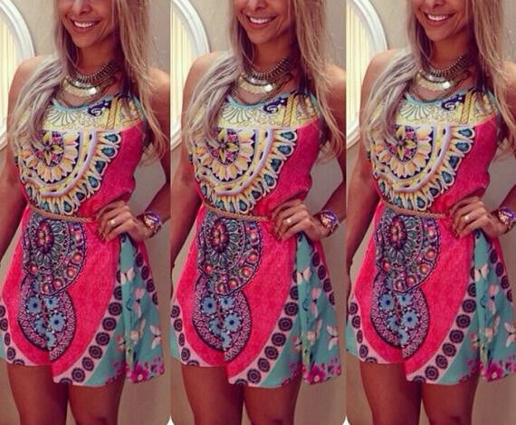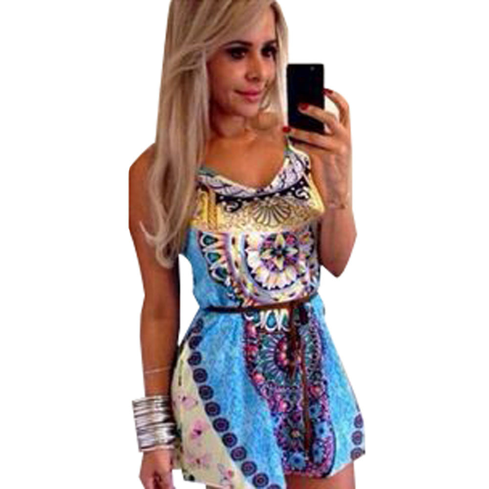 Boho Mini Summer Dress Strap Slip Beach Women Dress Sun Print Dresses Vestido Vestidos Femininos Plus Size Women Clothing 2015