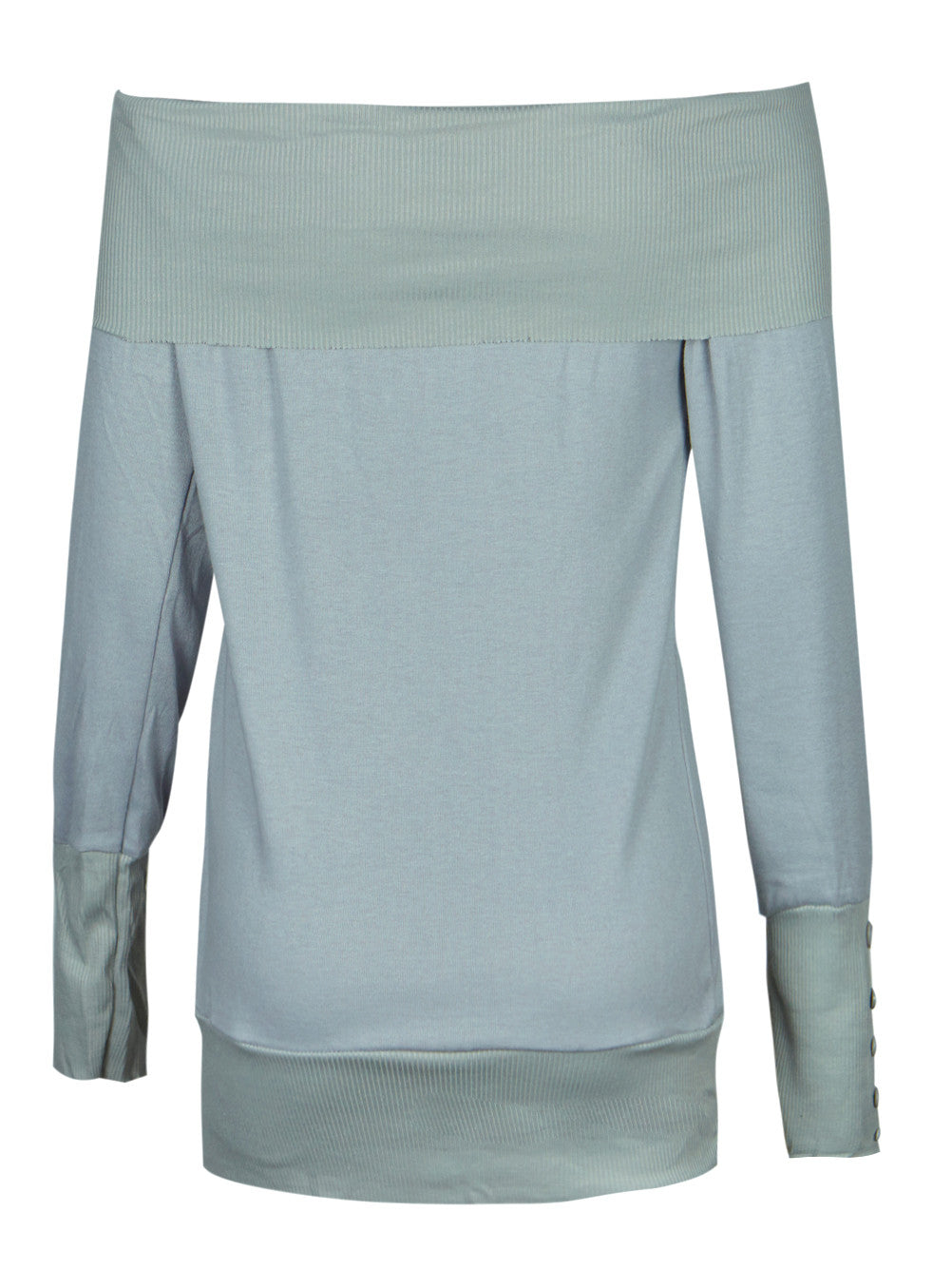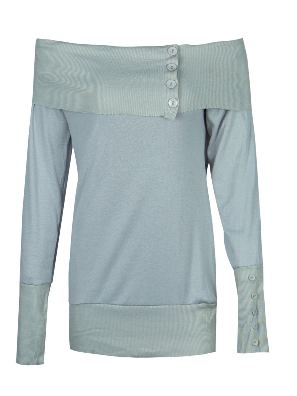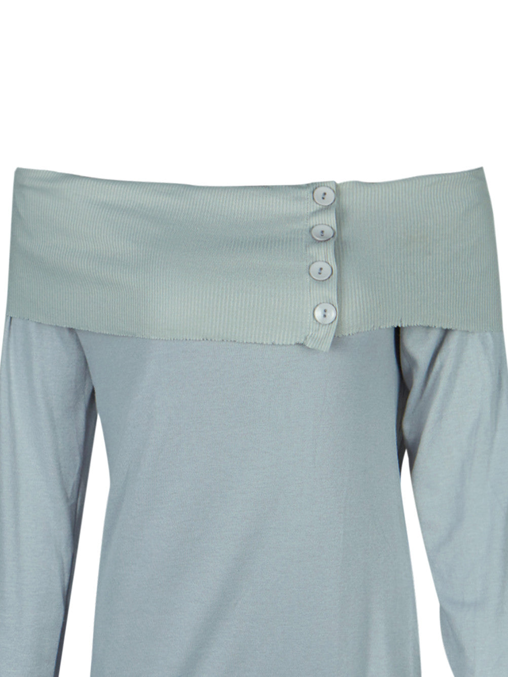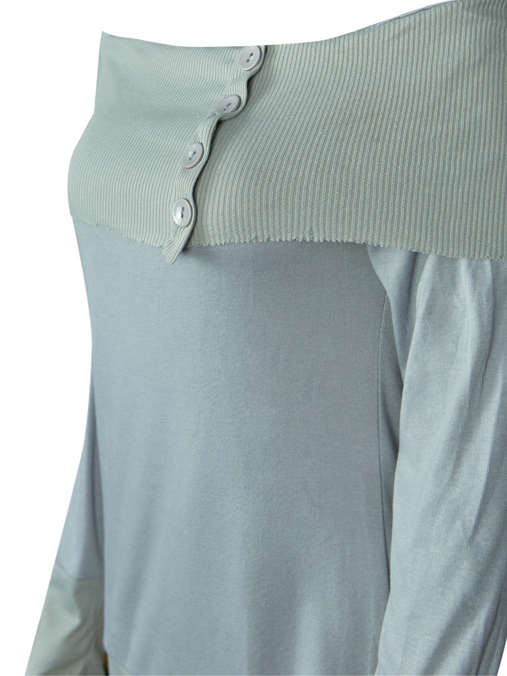 Button Patchwork Grey Kintting Off Shoulder Full Sleeve Blouse Women Fall New Fashion Slim Blouses 2016 Arrival Autumn Blouse