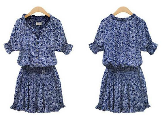 Casual Blue Women Dress Mini Summer Dresses Elastic Waist Vestidos Femininos Roupas Femininas Rendas Do Dress Vestido