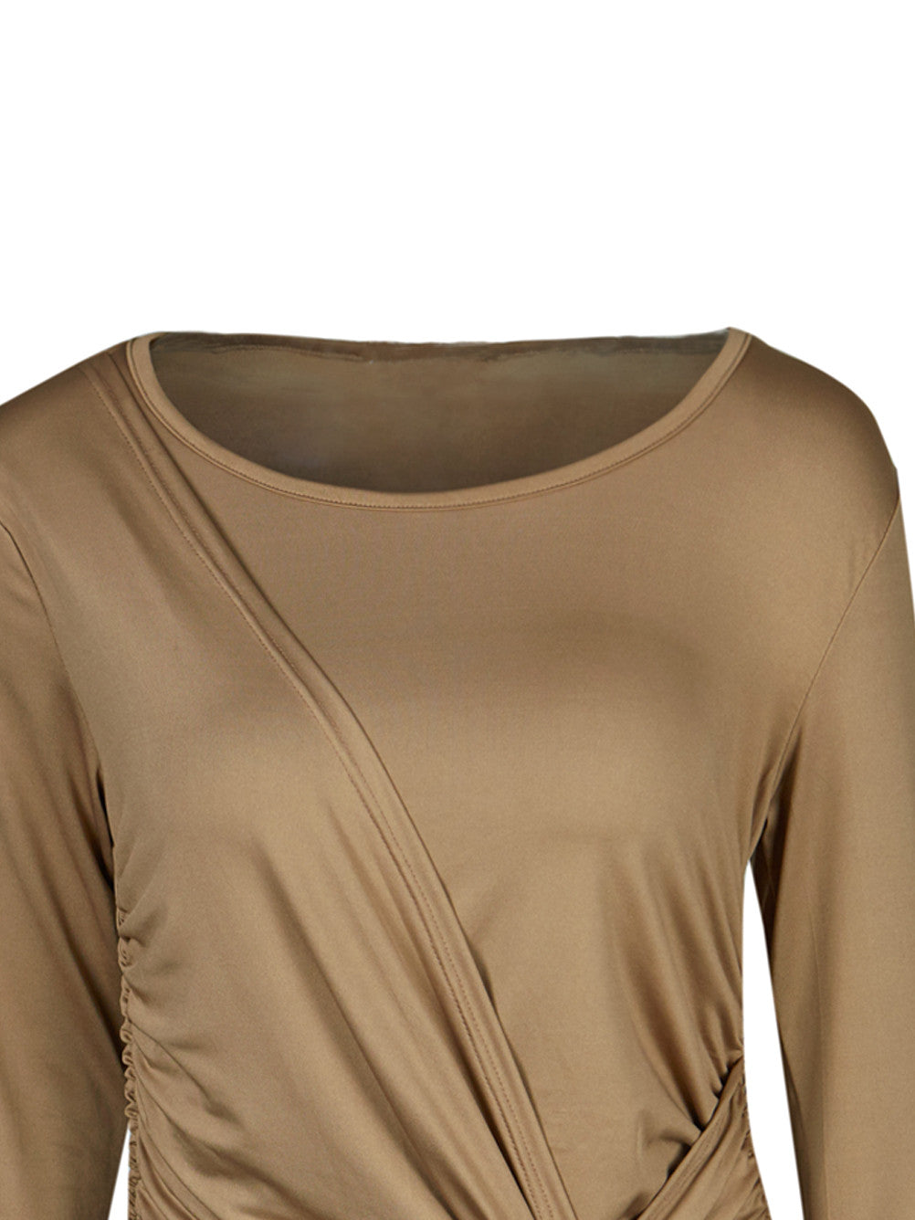 Casual O-Neck Blouse Full Sleeve Kink Solid Ruched Bodycon Khaki Blouses Women Tops And Blouses For 2016 Fashion Casual Fall Top