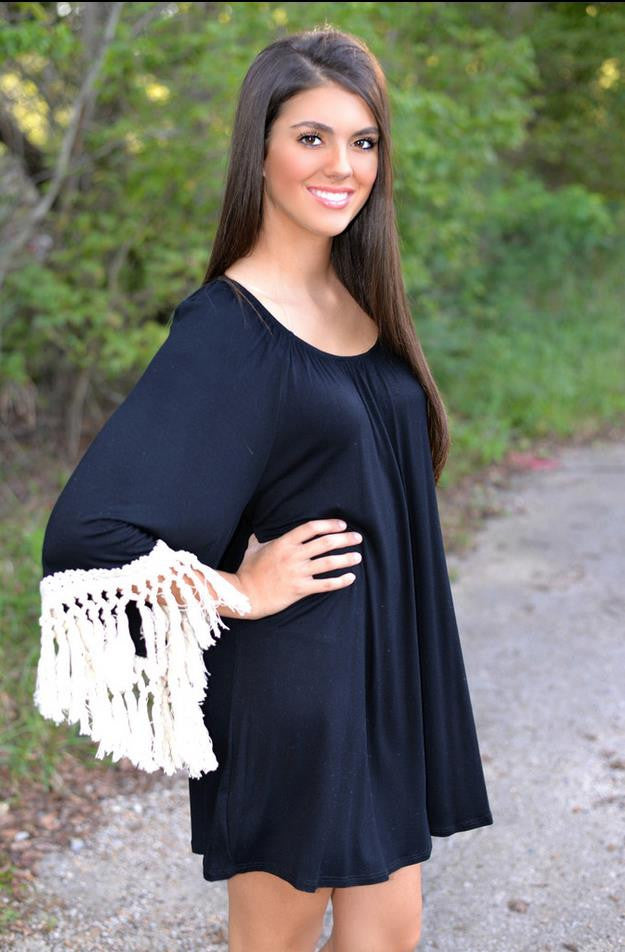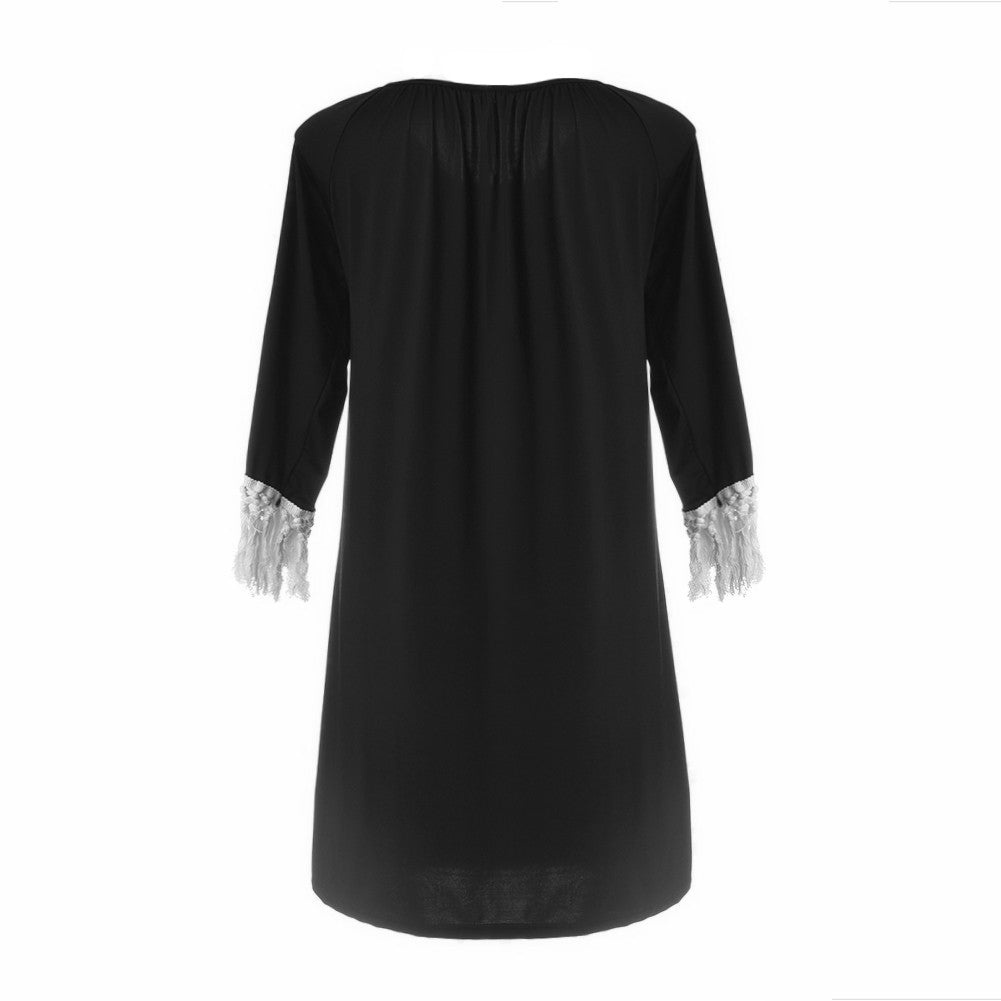 Causal Women Dress Black Oversized Mini Dress Plus Size Dresses Netted Fringe Tassel Sleeve Loose Dress Vestidos Summer Style