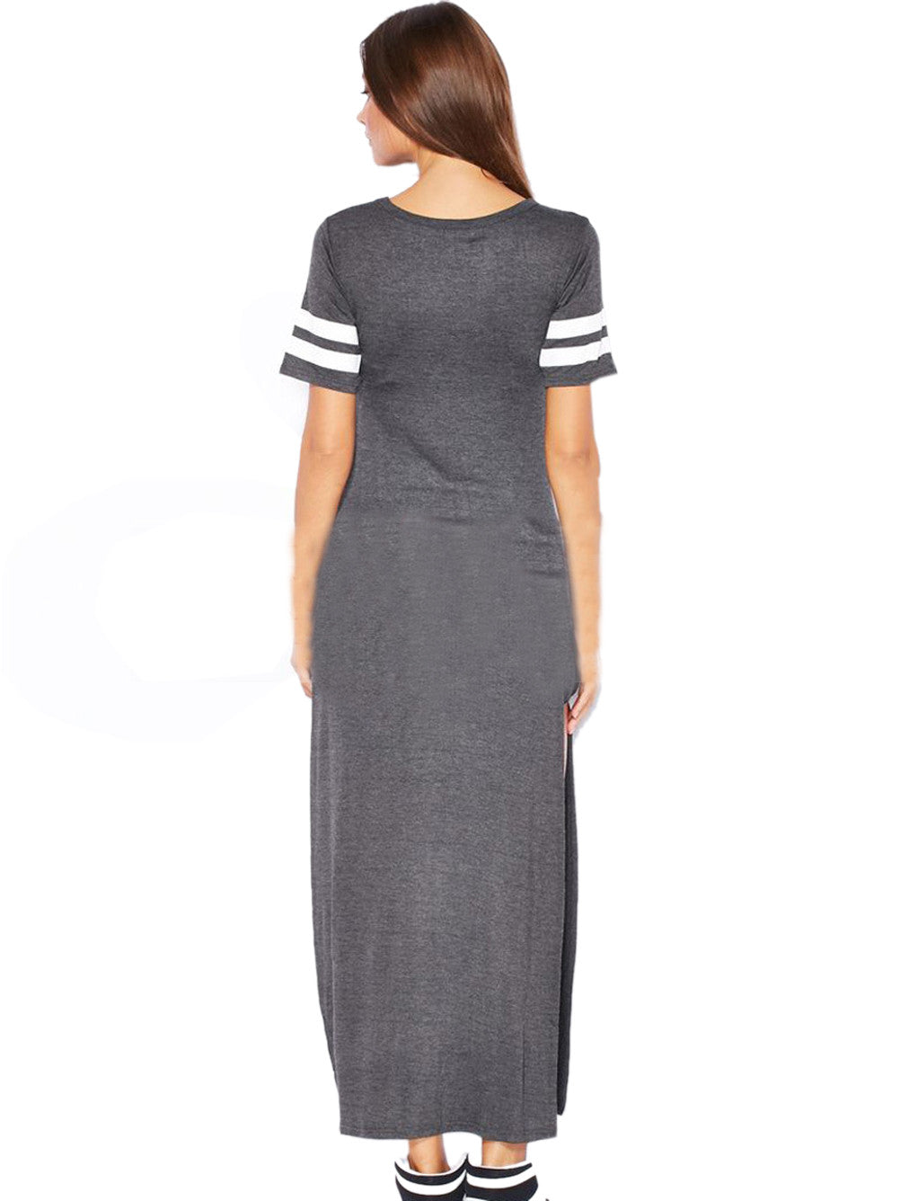 Chicago 84 Letter Print Baseball Style Double High Slit Fashion Girl Summer Dress Women Long Maxi T Shirt Dress New Arrival 2016