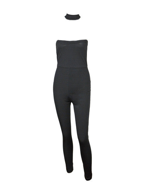 Choker Black Strapless Jumpsuit Sexy Club Party One Piece Outfits Long Jumpsuits For Women Bodycon Romper Playsuit Overall
