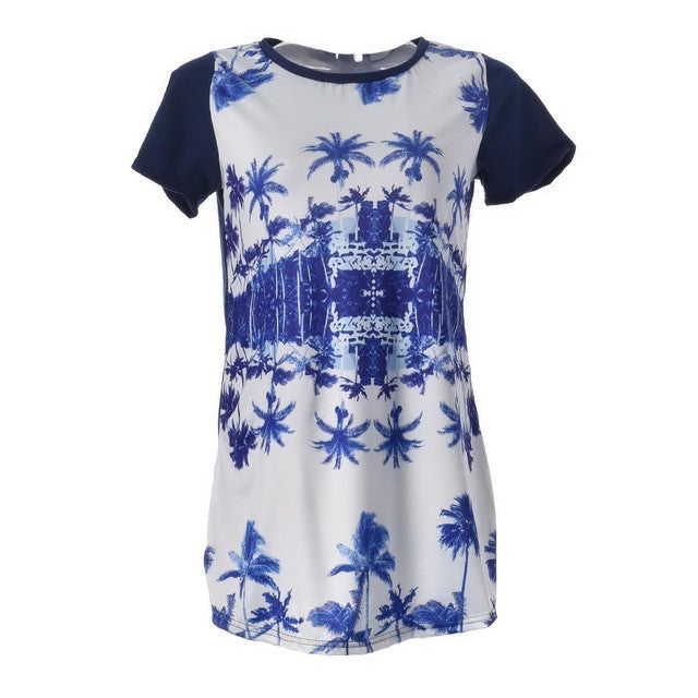 Coconut Tree Printed Causal Mini Sexy Dress Girl Beach Dress Women Clothing Short Sleeve Simple Summer Style Dresses Vestido