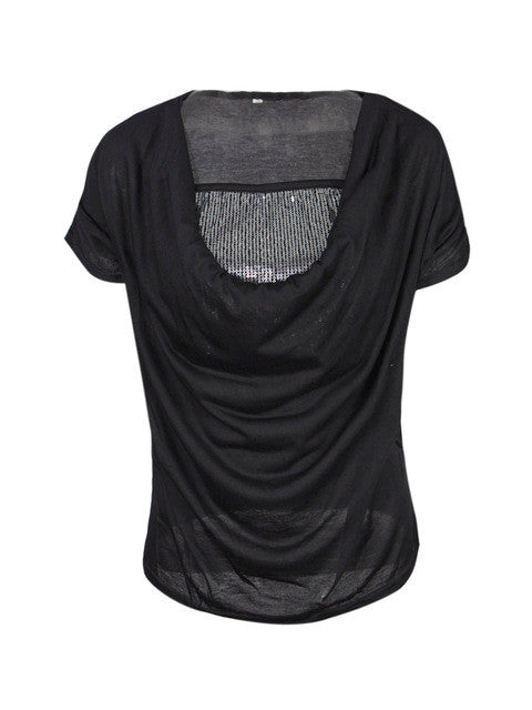 Cowl Neck Front Sequin Pattern Sheer Women Summer Fashion Blouse Women Fashion Tops High Quality Fashion Clothes Women 2016