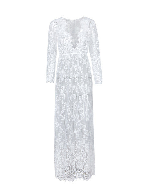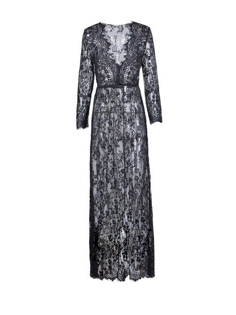 Crochet Long Maxi See Through Floral Pattern Embroiderid V Neck High Waist Women Dress Sexy Beach Elegant Fishnet Plus Sizes