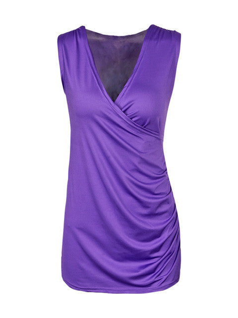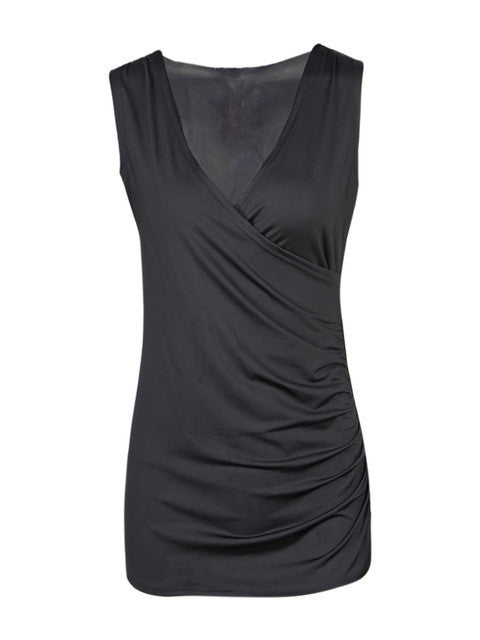 Deep V Neck Wrap Sleeveless Tank Long Shirt Casual Fashion Elegant Office Womens Blouses For Spring 2017 New Summer Ladies